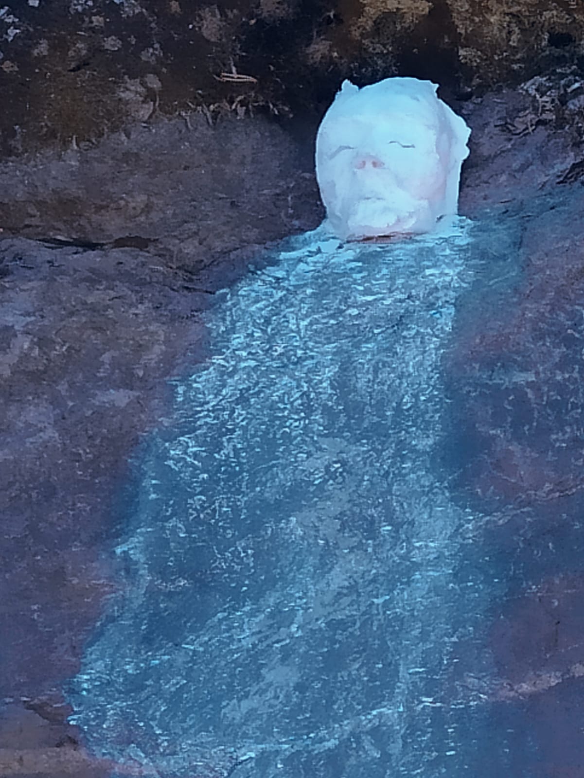We plant some clay pieces to the places we visit in the area. These face like objects are our way to try to materialize and connect with the spirits of the rocks, lakes and forest. Clay isn't fired, so it evolves.